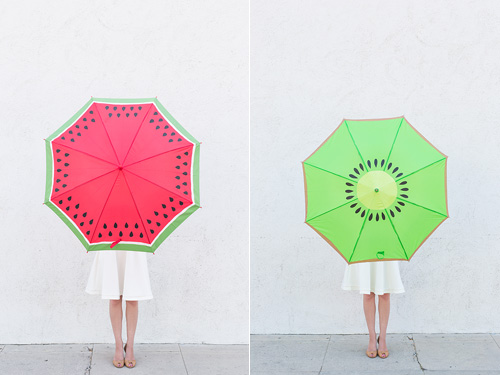 西瓜雨伞和奇异果雨伞用同样的方式制作,根据图案的不同调整胶带的造型。