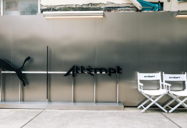 以PUMA X ATTEMPT联名系列“Hack the Archive”的主题为灵感,把信息网络时代,破译和解密的过程融入整体视觉设计中,打造出互动性与设计感兼具的独特概念空间。整个活动分为室外与室内空间两大部分,室外部分在ATTEMPT原有金属质感的庭院中,大胆融入极具辨识度的PUMA X ATTEMPT联名标识以及特色互动装置,潮人嘉宾们置身其中,即刻开启一场“破译档案”体验之旅。