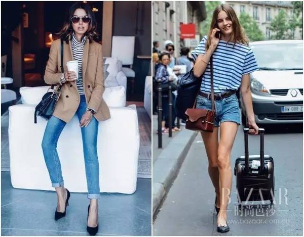 无论你是在去上班的路上,还是出差的路上,一件条纹T恤就能时髦得畅通无阻。