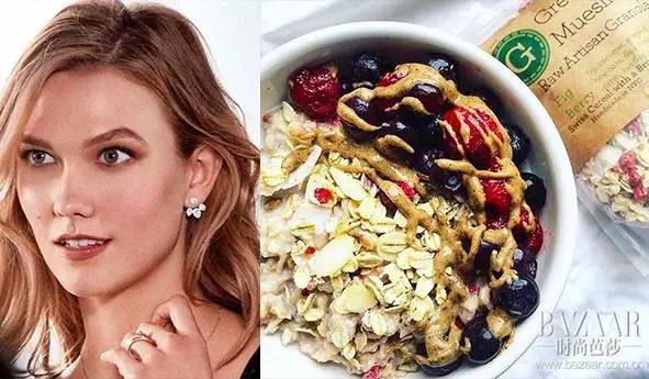 还有一位是wuli超模界的学霸:Karlie Kloss。她对燕麦的喜爱也是爆棚。KK说,相对于加工的比较细致的燕麦,她更喜欢颗粒表较粗的。不仅吃起来有嚼劲,而且因为加工程序简单所以更加的天然。