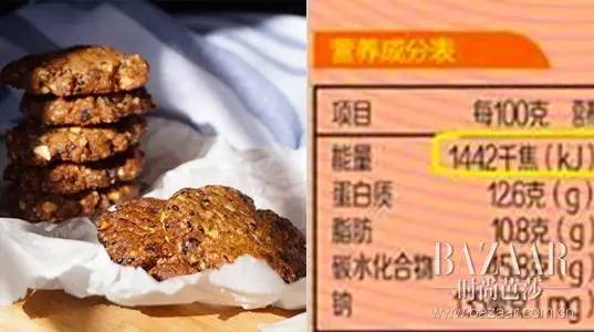 注意芭姐在这里说的燕麦饼干热量,仅限于市面上卖的,而非在家自己手工做的。你们可以仔细看上面的热量表,每100g有1442KJ热量那就是345卡(千焦÷4=卡路里),相当于3碗大米饭的热量!