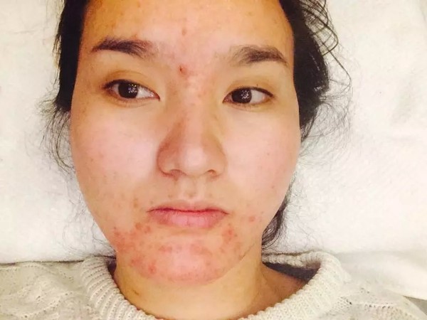 当时痘痘大多集中在下颌,那段时间的雾霾加上工作忙没休息好,抵抗力下降,越是长痘越想化妆遮盖,皮肤不透气,交叉感染,这样蛰伏一段时间后痘痘全面爆发了,又红又㾕,此起彼伏的起了一大片,真是吓到了!