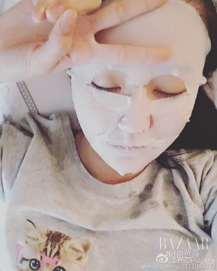 穿着睡衣的乔欣在微博上晒出敷面膜照,显然已经把每晚敷面膜当成睡前加餐了~ 芭姐发现乔欣敷的这片面膜在嘴部没有开口,可见她的敷面膜小心机就是唇部也要一起保养哦!而且,当唇部不开口时,面膜的精华成分能更好地被全脸吸收。