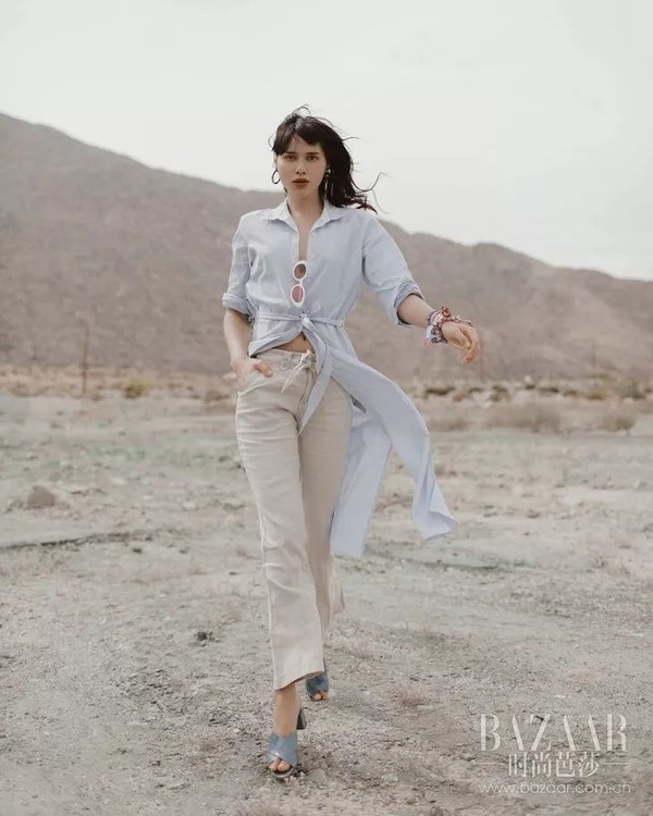 如果觉得过于性感,那就像马思纯这样在里面加条牛仔裤咯▼!让衬衫衣摆这样随意地散落开来,即便是再简单的白色衬衫裙,也会带出刚柔并济的特别~