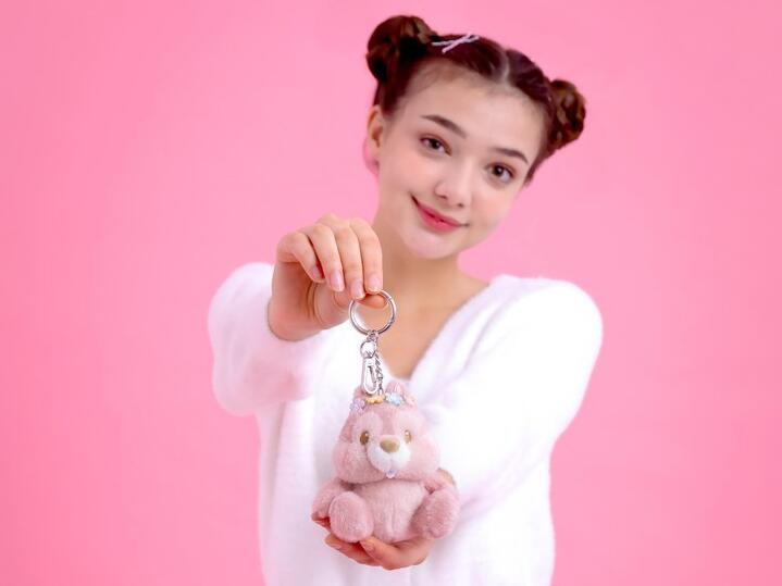 樱花奇奇钥匙链,采用相较于其他产品更短的短毛,采用相同的设计理念,奇奇头戴四色马卡龙色印花花环。钥匙链既可以作为挂件摆件装饰包使用,也可以挂钥匙。搭配同系列的蒂蒂玩偶包,也是不错的搭配选择。