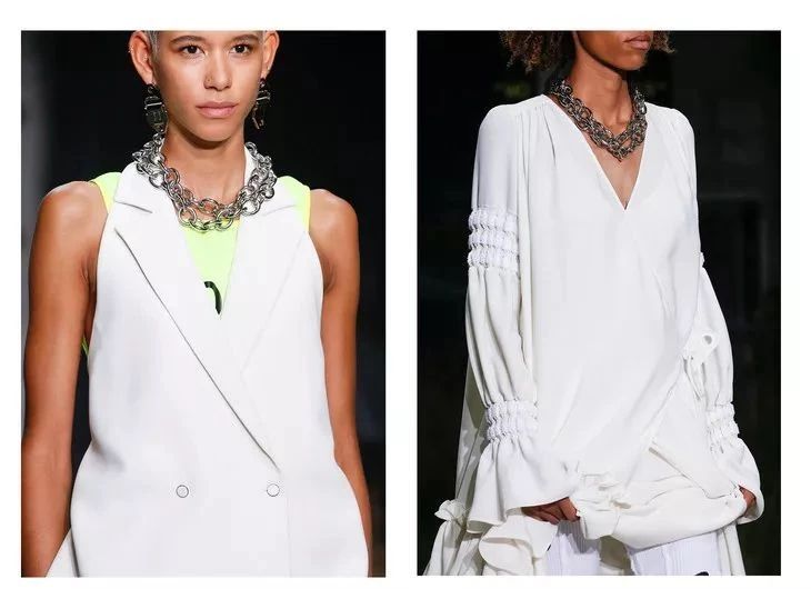 做街头起家的Off-White更是在2019春夏秀场上,多套造型选择了这款Chain Necklace.不论是运动气息十足的背心还是略有少女感的白裙,都能很好的和这个夸张的大锁链match住!