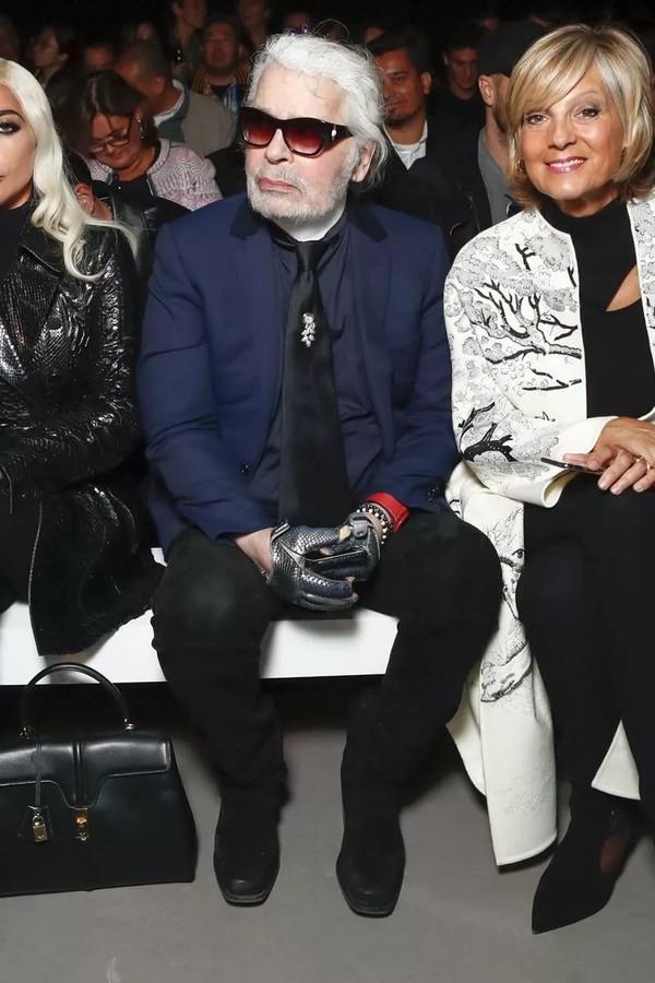 Karl Lagerfeld与Lady Gaga一起坐在秀场的头牌,别忘了他曾经为了Slimane设计的西装在13个月减掉90磅。