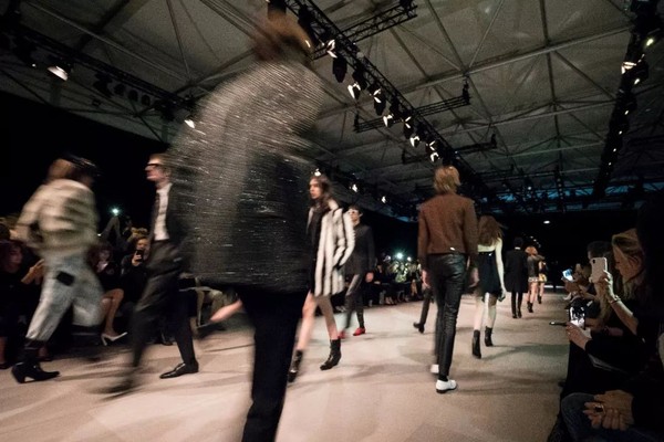 如果你关注Hedi Slimane摄影网站的Instagram账号,便会发现一切都只有黑白二色。黑色在本季依然被放置在足够重要的位置,它被赋予了哑光、绸面、亮片等多重效果。那些黑色西装外套和连身裙就像一道道锋利的剪影,在巴黎夜晚的街道中穿梭。