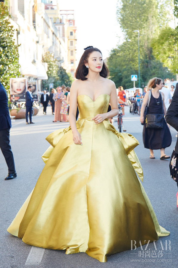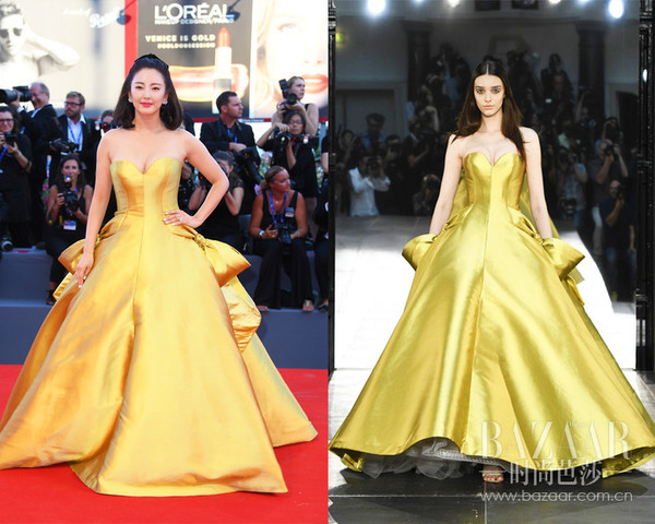 张雨绮身着Alexis Mabille 2016秋冬高定金色礼服裙亮相红毯。蓬松撑开的金色裙摆,微微弧度的中长发,美艳动人的她是不是超像《美女与野兽》中的Belle公主?