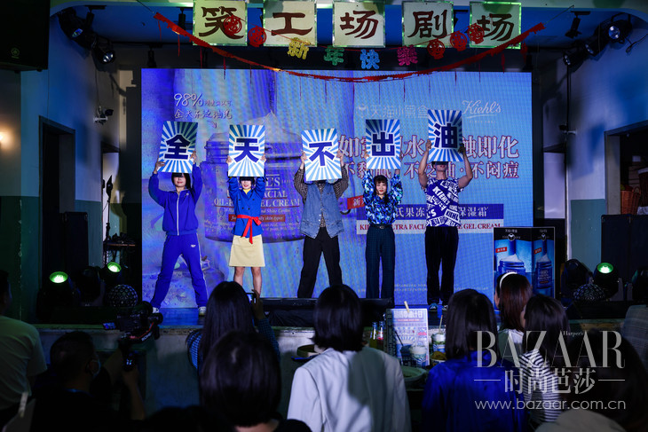 “今天来到文和友,龙虾臭豆腐小炒肉,吃香喝辣玩乐有,就问你玩得溜不溜?我俩来到这潮圣地,自行车我随便骑,街机麻将Disco厅,我的脸上都是油”一段轻松活泼的快板点燃现场。Kiehl’s科颜氏品牌产品经理钱思楠、朱若琦上台通过这样的方式为大家详细介绍了这款全新王牌单品的专业配方成分及卓越的控油保湿成效。现场嘉宾了解到,在我们肌肤的皮脂腺中存在天然的激素睾酮,它会使皮脂腺体积增大,分泌增加。而当睾酮遇到皮脂合成的催化剂——5α-还原酶时,就会生成活跃性5倍的二氢睾酮,从而导致皮脂腺分泌的油脂增多,伴随着油脂在面部的铺展,肌肤则会更容易出现油光满面的现象。全新Kiehl’s科颜氏果冻清爽高保湿霜师承保湿传奇Kiehl’s科颜氏高保湿霜,延续经典保湿成分冰川保护蛋白,深层锁水、调理肌肤屏障,搭配复配微分子多元醇可以实现快速渗透,深层补水,完健的复合配方补水效果更加强劲,即刻增加肌肤水分99.6%;同时协同超微肌氨酸,有效从根源控制油脂分泌,帮助即刻减少表皮油光的同时,还能从根源改善肌肤出油问题。三大成分高效解决出油难题,让肌肤全天水润不泛油光!