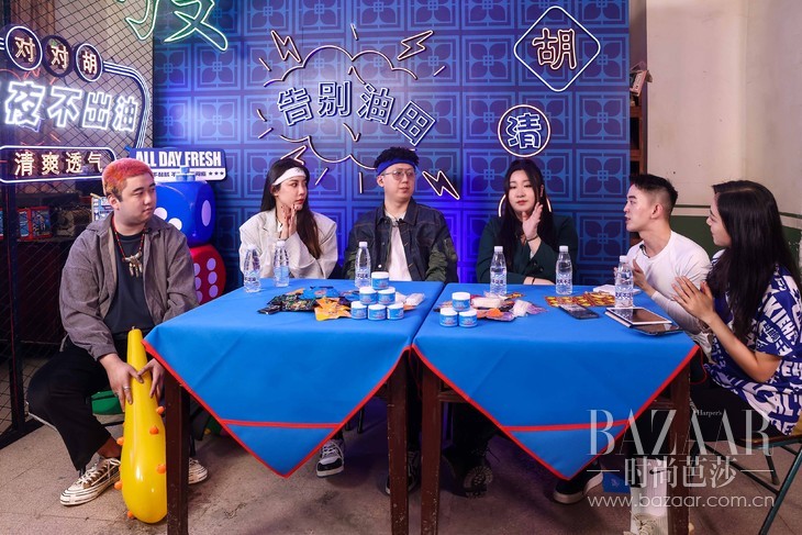 潮流博主三里鹏、抖音红人你玥姐、潮流博主大怪兽、演员歌手锤娜丽莎(从左至右)夜聚雀神会,四大戏精教你“熬夜不出油”