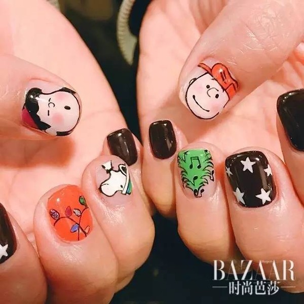 当然,对于想逆生长的各位宝宝们来说,做一个史努比美甲是最适合不过的了,分分钟嫩10岁有木有!不过要问今年最流行的卡通美甲是什么,那答案只有一个——小猴子美甲!