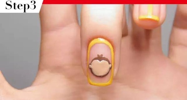 等咖啡色甲油干掉后,用肉色画出小猴子的脸的轮廓!