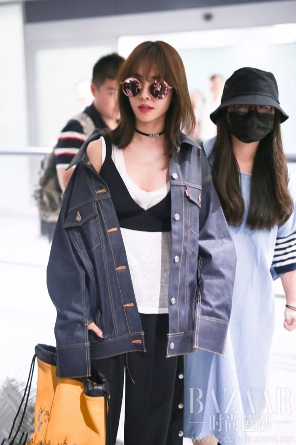 而对“内衣外穿”情有独钟的Baby则是用简单又有青春气息的T恤跟内衣式吊带作搭配,穿出了蓬勃的少女感。