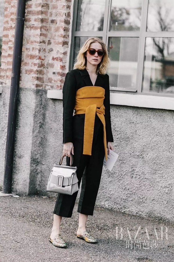 或是在穿西服套装的时候,同样可以将抹胸式内衣搭在外层,十足混搭的风格,真的超级时髦。