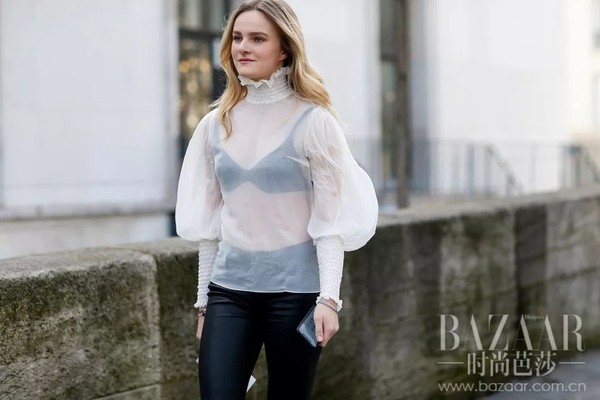 或者,可以从内衣的材质入手,硬朗的皮质不失为一种好选择,跟雪纺碰撞会有酷酷的高级感。
