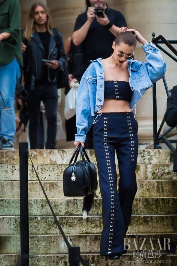 休闲百搭的牛仔外套可以让你的内衣外穿变得理所当然,要想显腿更长,还得要短打的牛仔外套和拖地的长裤。