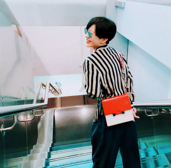 和上一个发型大体相似,却更加蓬松。在视觉上少了一丝女人味增添了一丝街头的味道。随意的造型搭配竖条纹衣衫和墨镜,古灵精怪又帅气。