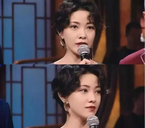 这款发型相对于之前的来说就成熟许多,柔顺的秀发被2:8分开,乖巧的躺在郭采洁额头的两侧,虽不惊艳却不失存在感,再搭配一个夸张的耳环起到了为整体造型“助力”的效果。不管搭配什么妆容或者衣着,都很保险轻易不出错。