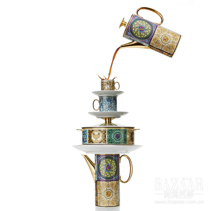 Rosenthal与Versace合作推出的Barocco Mosaic系列餐具颂扬了Versace的品牌传统。四款经典印花图案组成充满Versace 特色的设计。亮丽夺目的色彩充满喜悦与活力——粉紫色和柔和的薄荷绿色,搭配典雅金色,亦令人眼前一亮。
