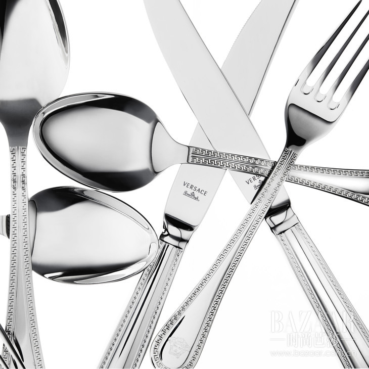 全新的刀叉餐具以经典希腊回纹饰边,印有经典 Medusa 图案,优雅出众。