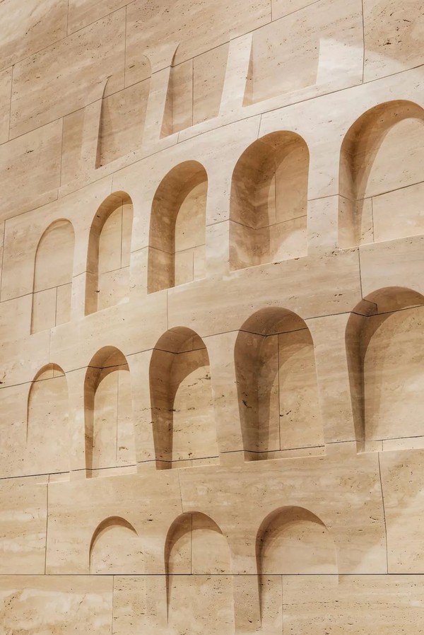 如今,建筑外立面仍保持原样,内部由室内设计师Gwenael Nicolas 操刀,五扇拱形玻璃窗呼应FENDI 五个字母。店铺入口装饰有瑞士艺术家Not Vital设计的巨型镜面“月球”雕塑,下方的地面采用圆形同轴大理石地板,灵感源自罗马的圣彼得大教堂。