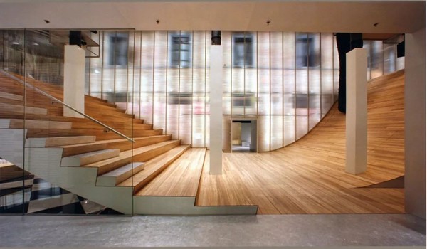 第二年,洛杉矶旗舰店在贝弗利山Rodeo Drive 落地,同样由OMA 事务所完成。店内一段庞大的木制“山丘”状楼梯造型独特,与纽约店的“波浪”型构造相互呼应。独具特点的是,每个更衣室都配备了等离子显示屏,顾客可以从容不迫地看到自己的正面和背面影像。通过三个旗舰店的呈现,PRADA展现了作为奢侈品牌在时代更迭中与不同城市文化的关联性,同时也建立了对材料、应用科技和服务策略的尝试空间。