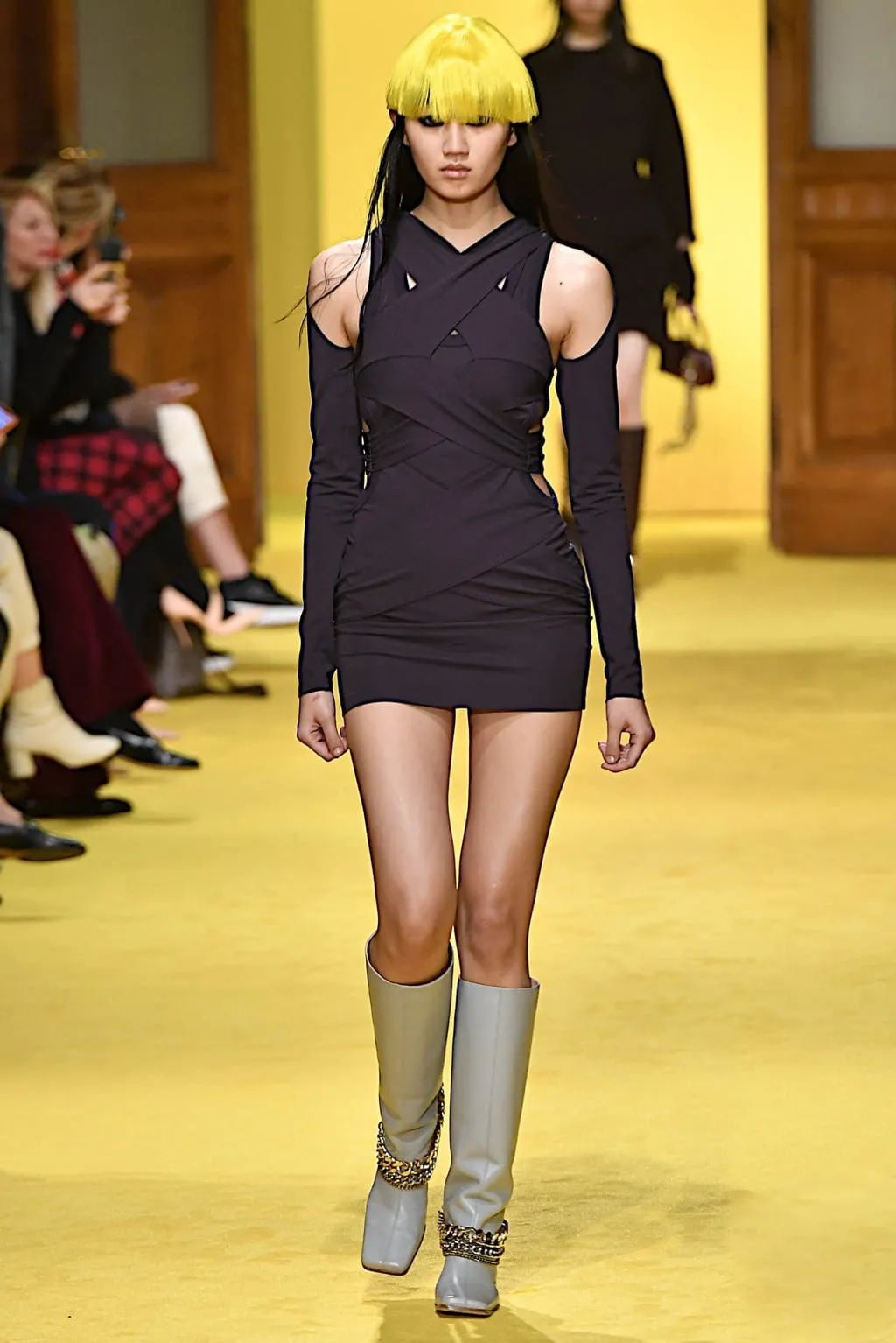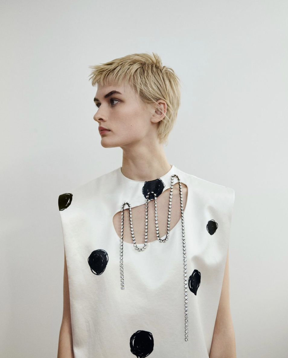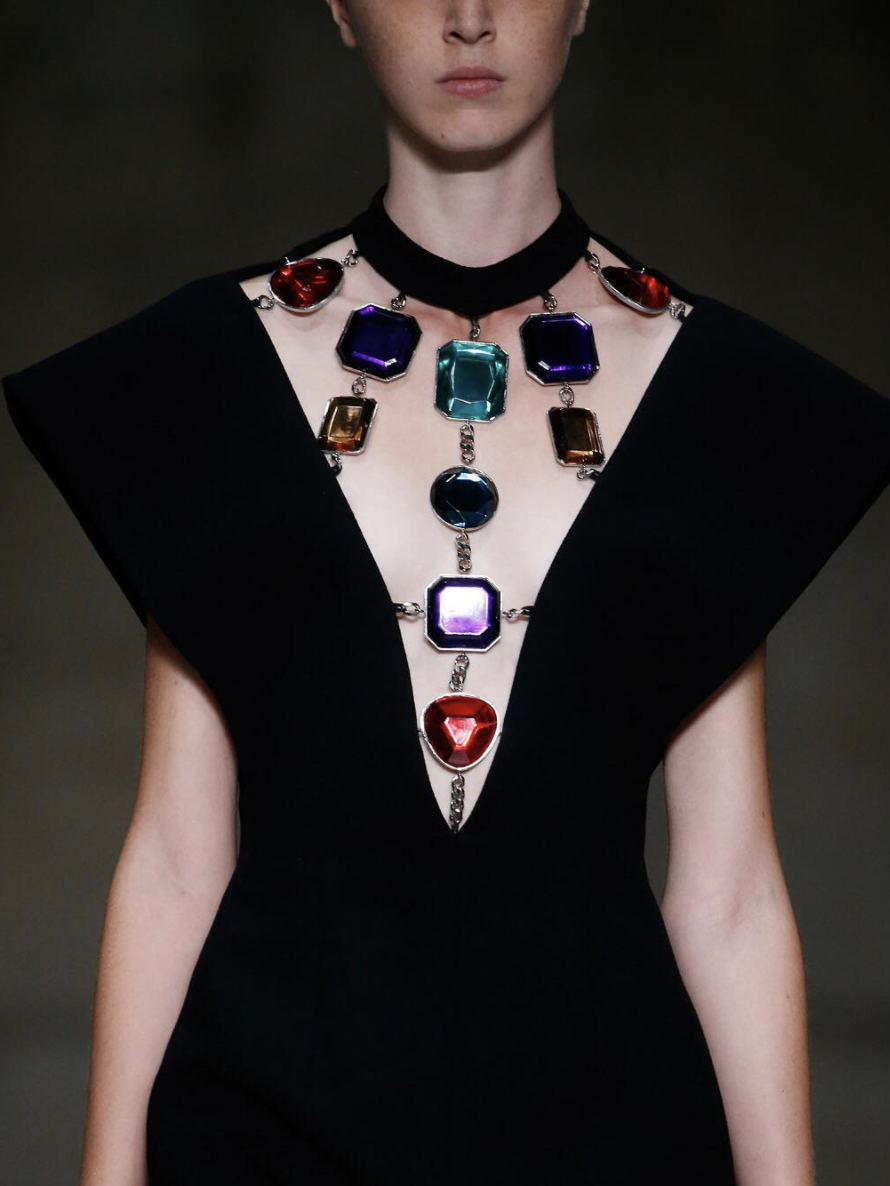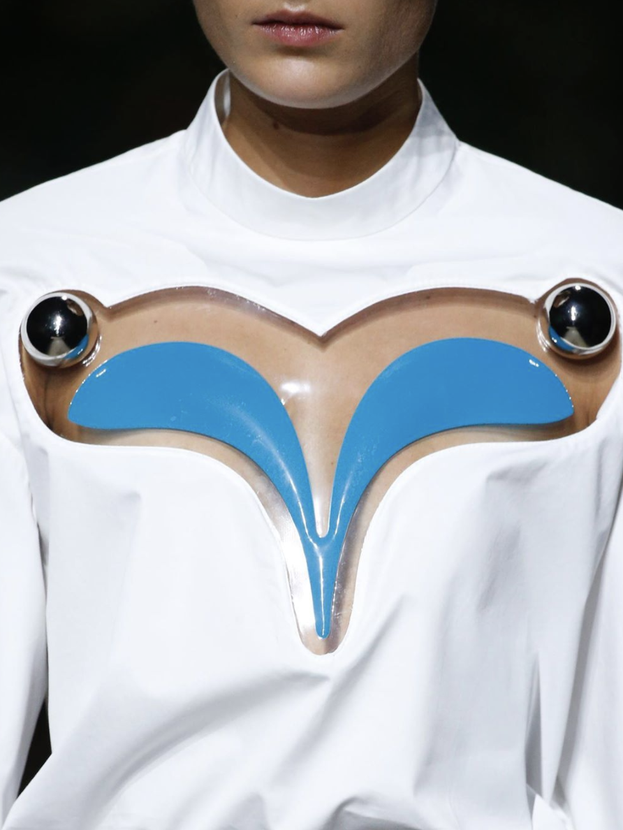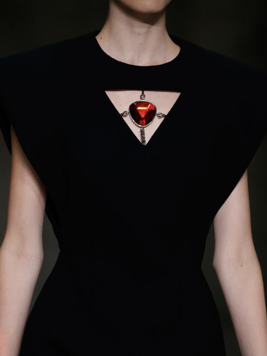 胸前镂空则应该算是最主流的剪裁露肤套路之一了,今年的秀场上也自然不会缺少⬇️
