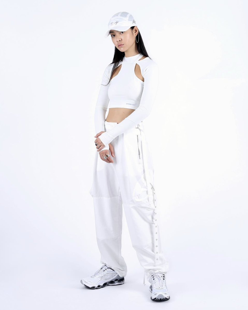去哪买?Black Pink常穿的机能风品牌Hyein Seo,就出了很多叠穿的腋下镂空上衣。