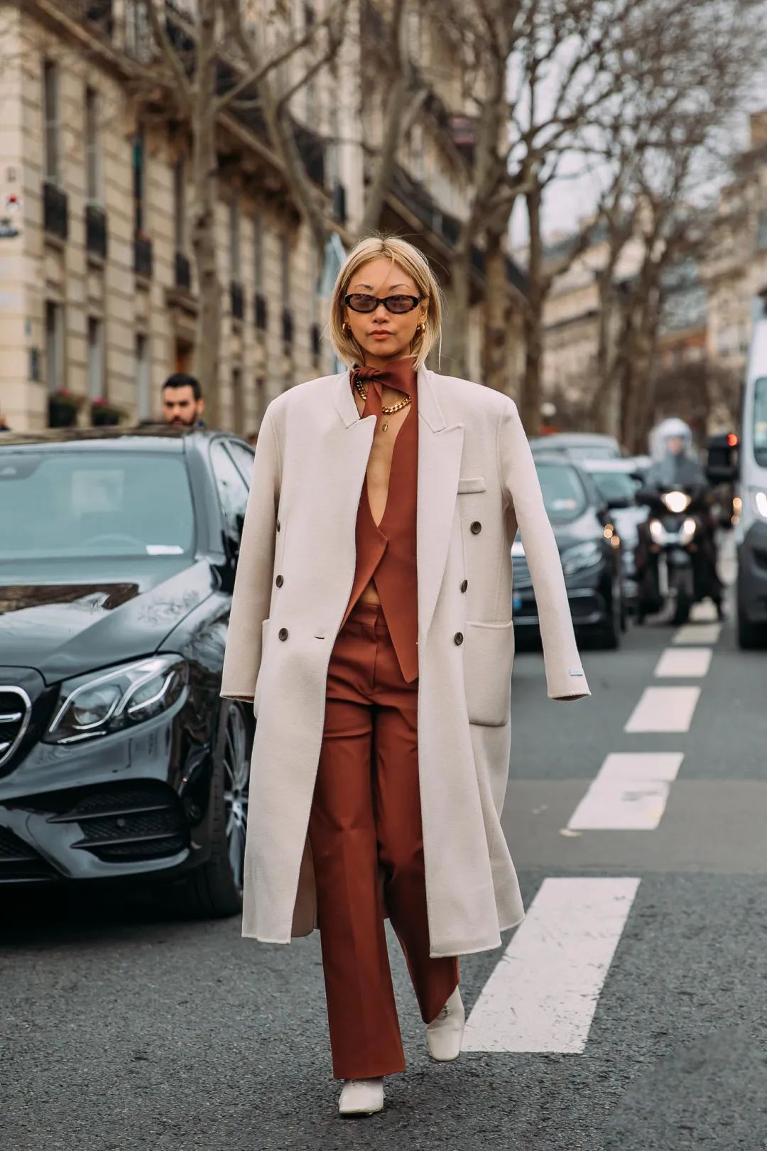 带有胯部掏空剪裁的阔腿裤既有风度,又有特立独行的小心机,腰部位置的三角地带留白,悄无声息的就将性感完全展露。