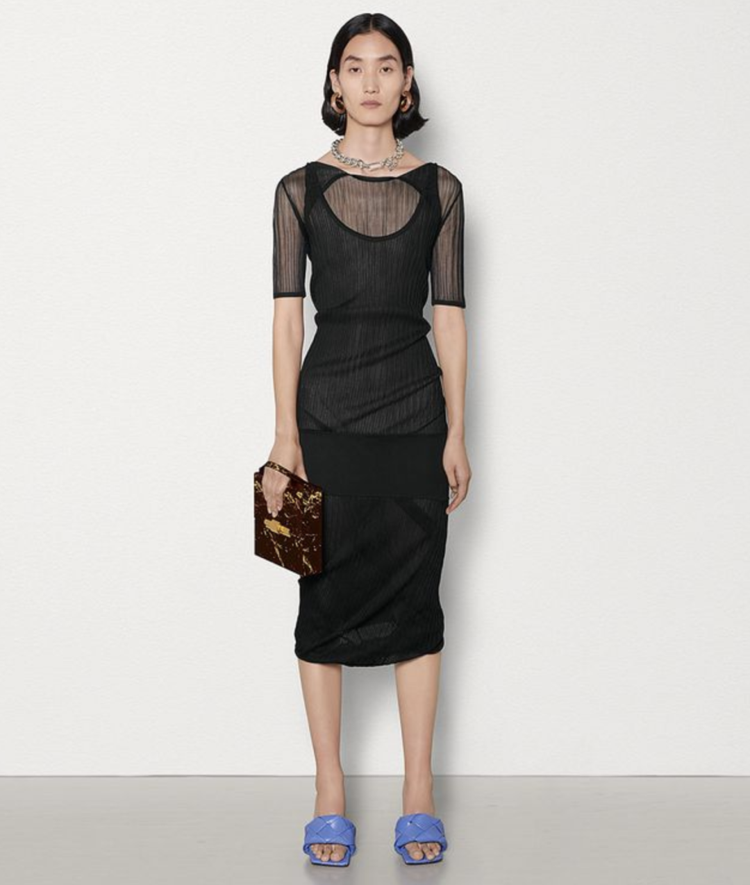 Bottega Veneta的胸前镂空成衣,面积和形状都跟别的品牌有所不一样,