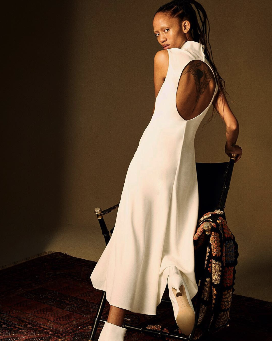 来看看Khaite的后背镂空设计,绝对能令你耳目一新。