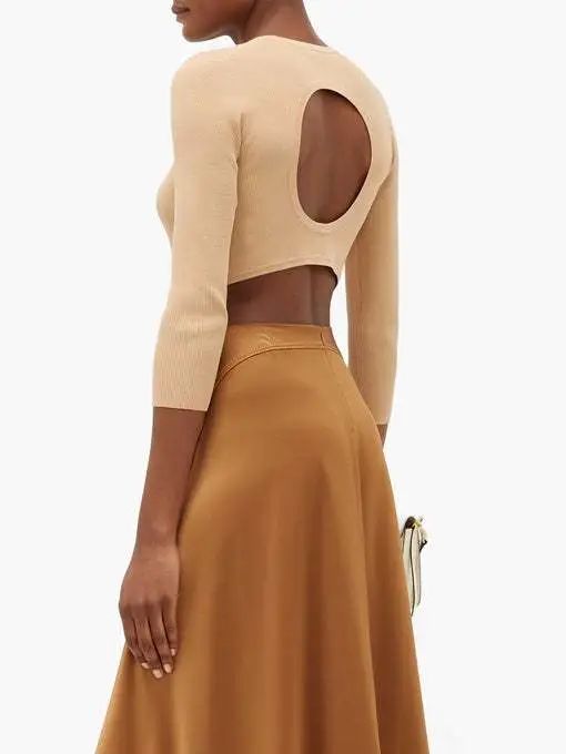 Cutout-back ribbed-jersey sweater