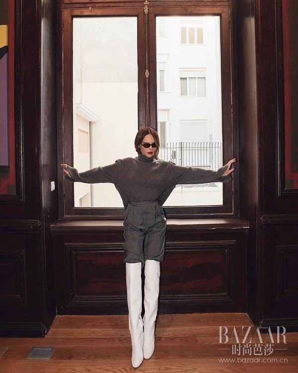 所以在选择显瘦的过膝长靴时,挑一双靴筒修腿但不贴腿,材质硬挺的款式更有效显瘦。无论是套在长裤之外,还是穿在裙摆之下,都摩登又时髦。