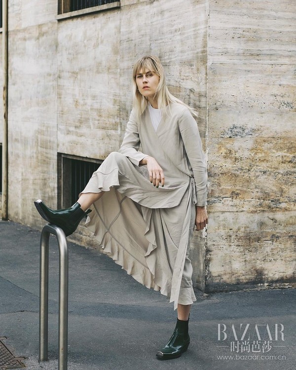 袜靴尤其是梨形身材女孩的救星,当她们穿起裤管宽松的裤装,或是飘逸的裙装时,踩上一双露出纤细脚踝的袜靴,整个人立“瘦”十斤。