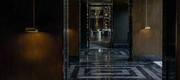 灯光下,地板上干净利落的黑白线条交织出立体的质感,极大的延伸视觉感受