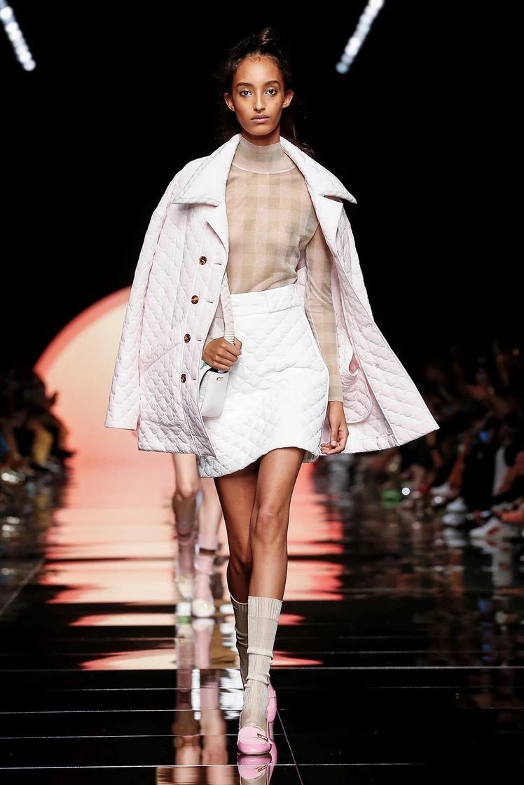 伴随着开场模特脚尖的那一抹粉色,Silvia Venturini Fendi对Fendi的“改造”便可窥见一般。在女性设计师的视角下,更多的少女元素和轻快的色调加入到这一季的设计中,这个经典的百年品牌将再一次变得年轻起来。