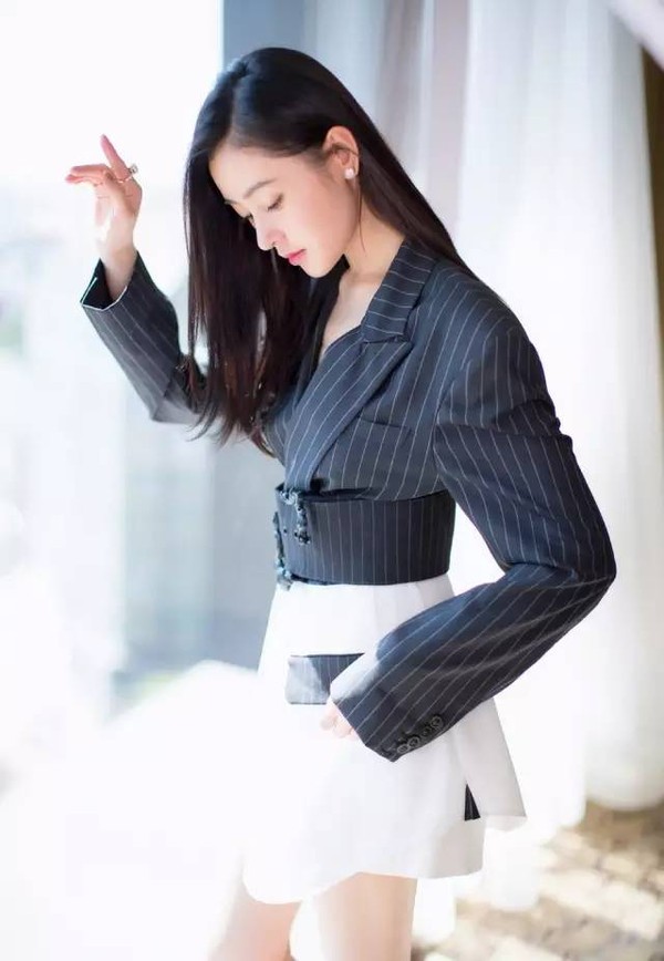 小猪再萌也没能抢镜成功,因为张天爱的西服裙实在太个性,条纹和纯白撞色,还有自带特效的腰带设计!