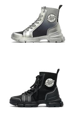 将中国航天的探索精神融入鞋履设计,利用精致亮线布打造出如银河般闪耀的飞织袜靴,让你如宇航员一般脚踏星辰!酷感的袜靴造型勾勒出足踝的流畅线条,交叉机能扣加持肆意释放朝气,各种风格都能随意切换,运动风、混搭风皆能凹出潮咖造型。立体的流线简约设计,让你每一步都走出月球漫步的灵动魅力。