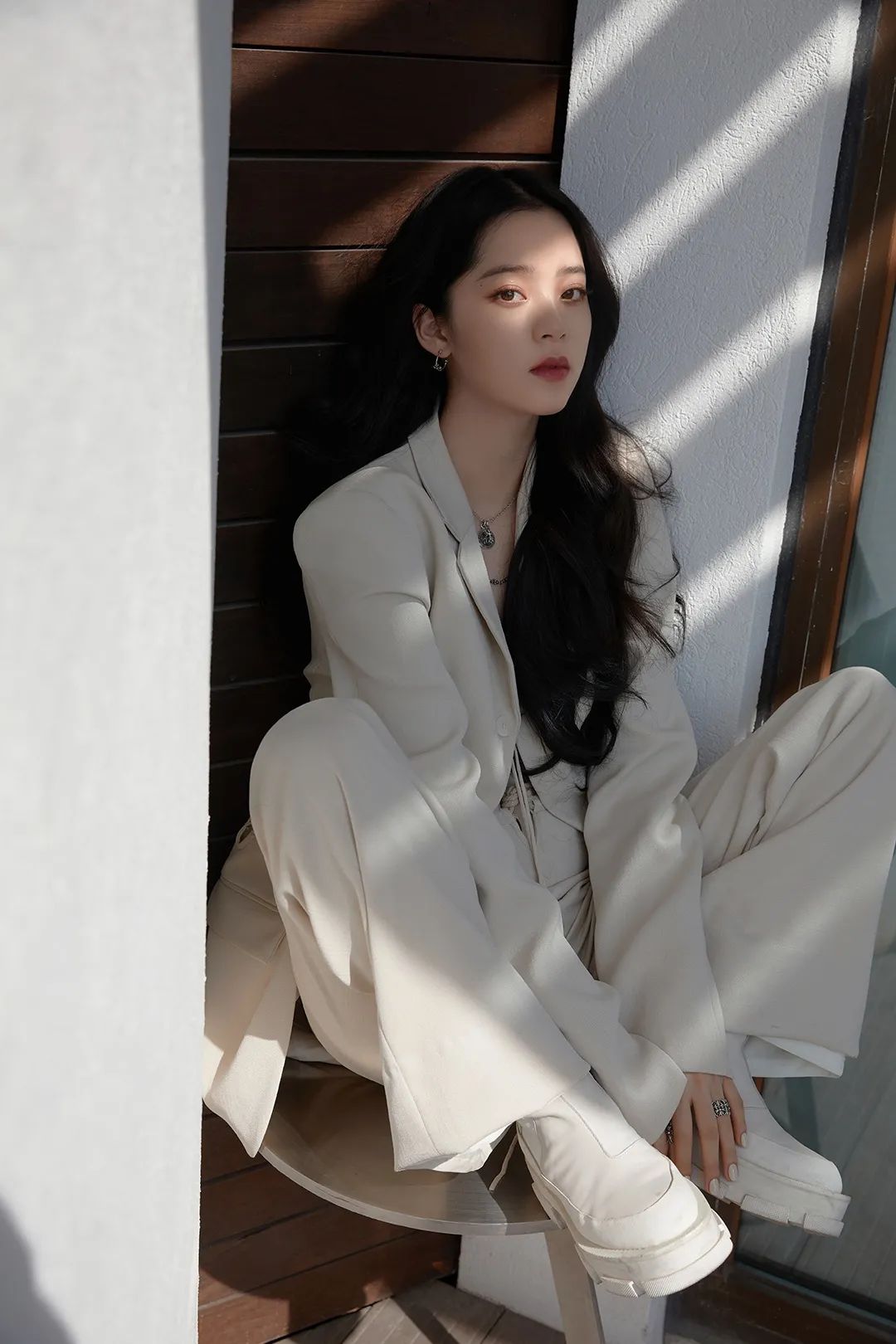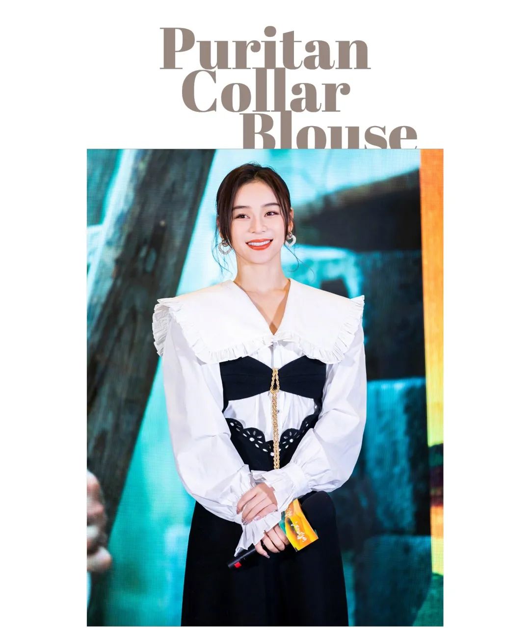 芭姐相信黑白搭配是永不过时的,来自ESTER HSU的白色衬衣,Puritan式的大翻领设计给人一种可爱的少女感,也有一种不可侵犯的禁欲感,瞬间美回十八。
