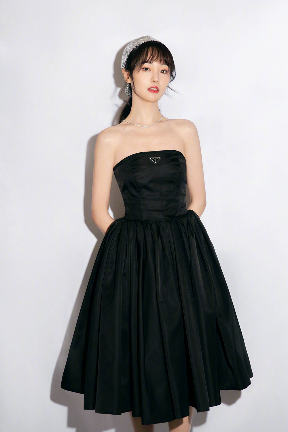 这周的郑爽是“大明星”营业了,身穿一袭Prada抹胸小黑裙的她让我们知道了什么是精致的Country Style,太有《罗马假日》赫本的气质了。 Prada Re-Nylon系列的这款黑色抹胸小礼裙,采用new look的收腰蓬蓬伞状裙摆设计,令小爽整个人都散发一股复古优雅的气质。