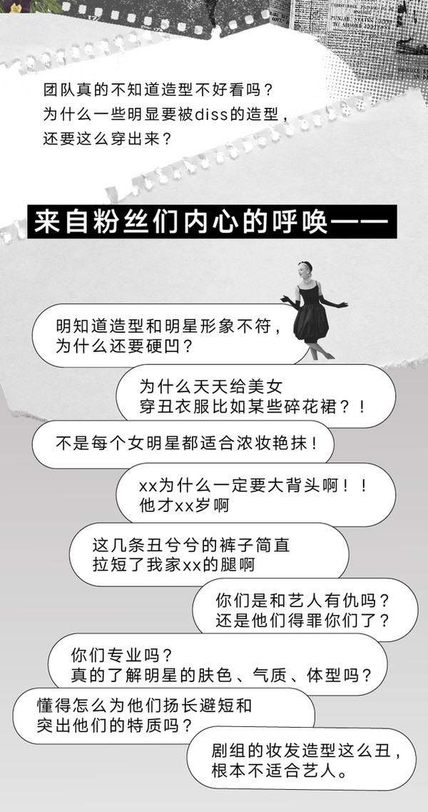 艺人团队:帮造型师朋友们说一句,就是如果你觉得某位已经成名的艺人造型不合适,而且是长期的不合适,不是偶尔翻车那种,那一定是TA自己的选择。
