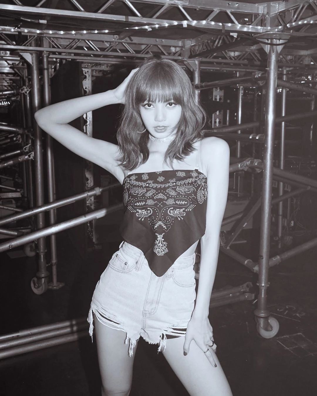 LISA甚至直接用一条丝巾玩出了一字肩新花样,但新穿法越多,就越要考虑里面究竟要怎么穿内衣才能做到既不影响Look的美感,还不会尴尬走光。