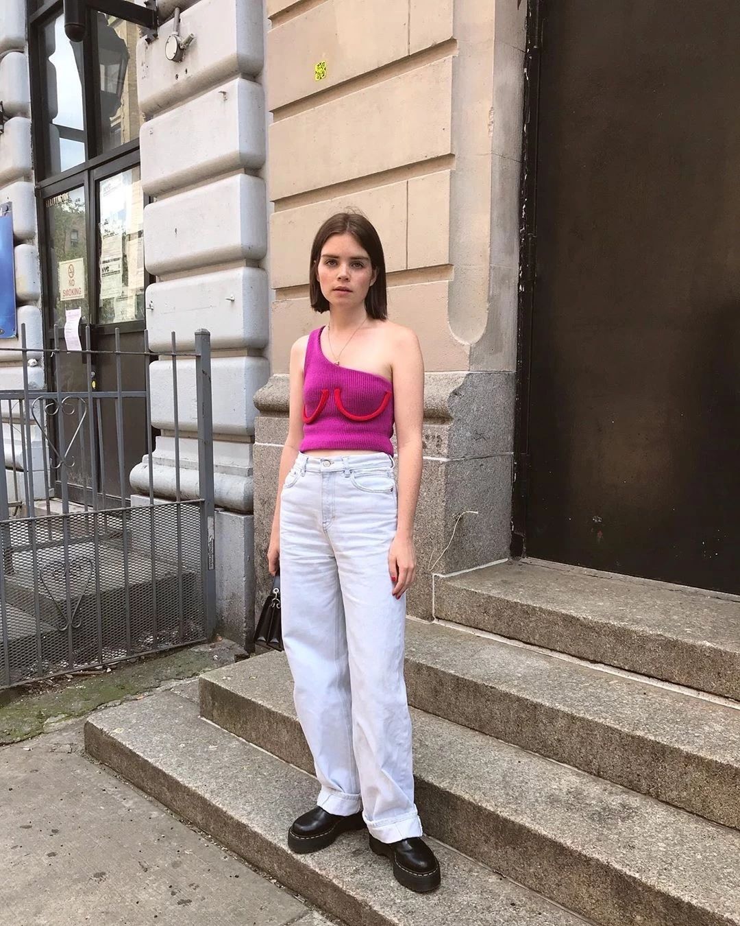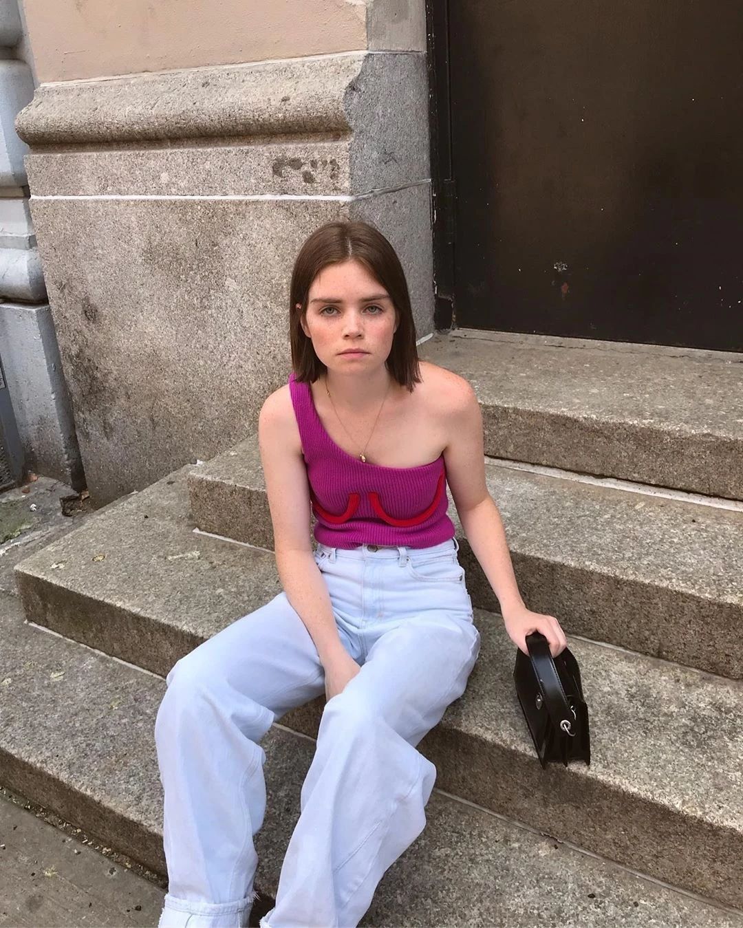 纽约品牌Orseund Iris推出了一款限量版单肩Top,模仿Bra的造型直接把底托挪到了上衣外边,真的是给今年的单肩Top增添不少趣味性。