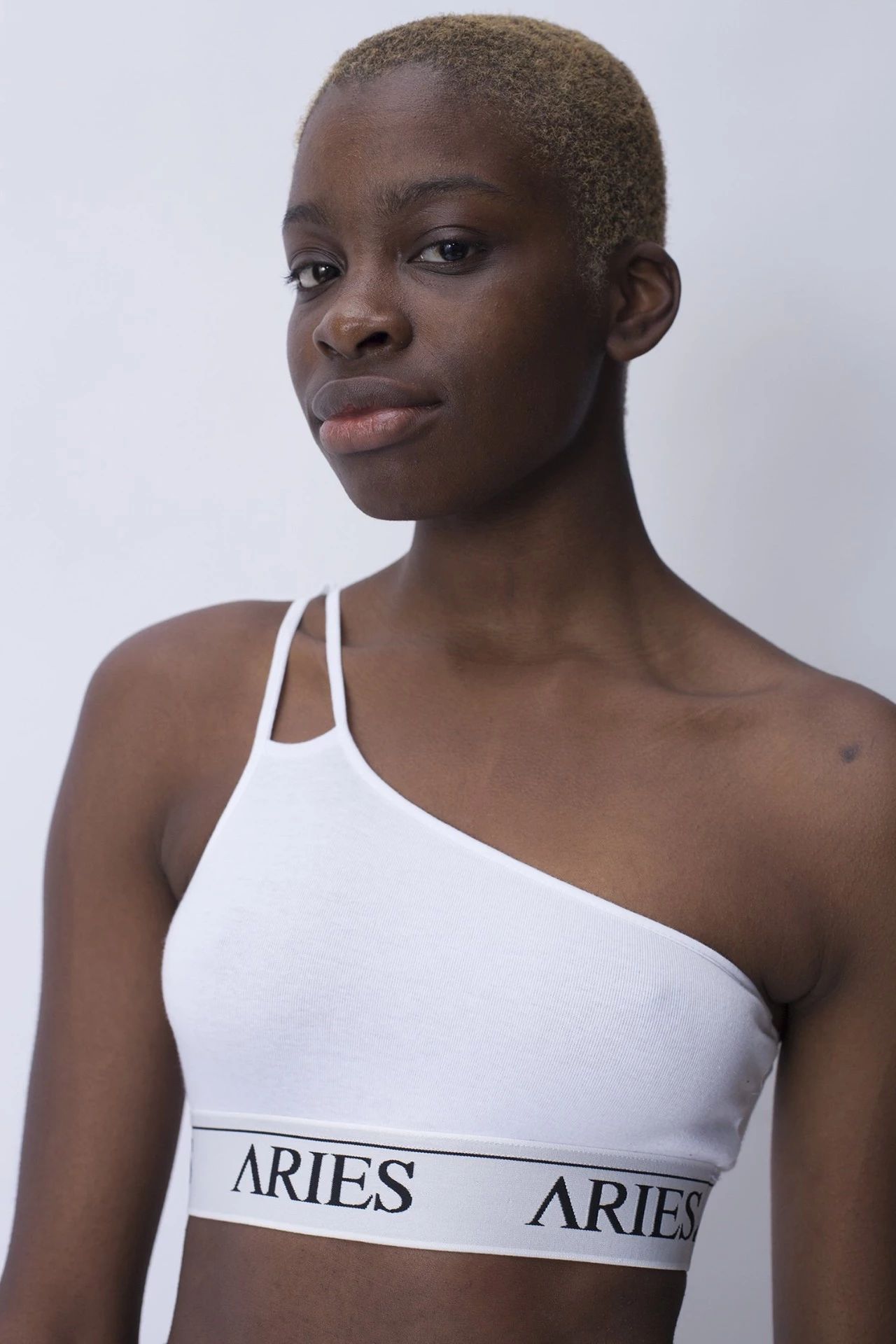 伦敦本土街头品牌Aries的这款单肩Top就能完美解决这个困扰,罗纹设计让内衣有弹性,底部的弹力宽边在合适收紧的同时还能让胸部呼吸。