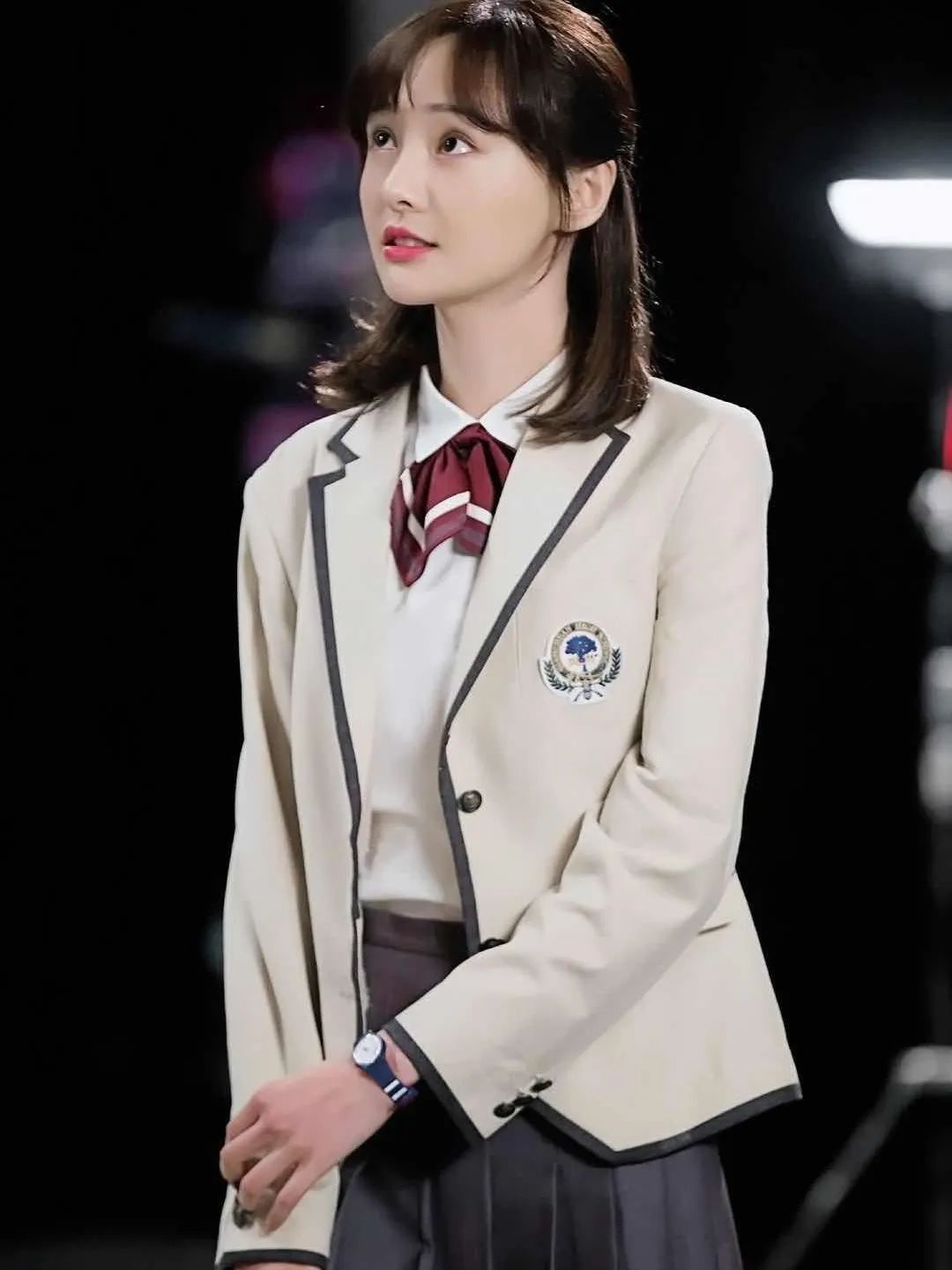 少女感十足的学院风造型也很值得拷贝,坐在操场上的傅菁顿时让人想起了上学时的模样,胸前的蝴蝶结刚好为“可爱状态”加分,青春气息洋溢得正浓。
