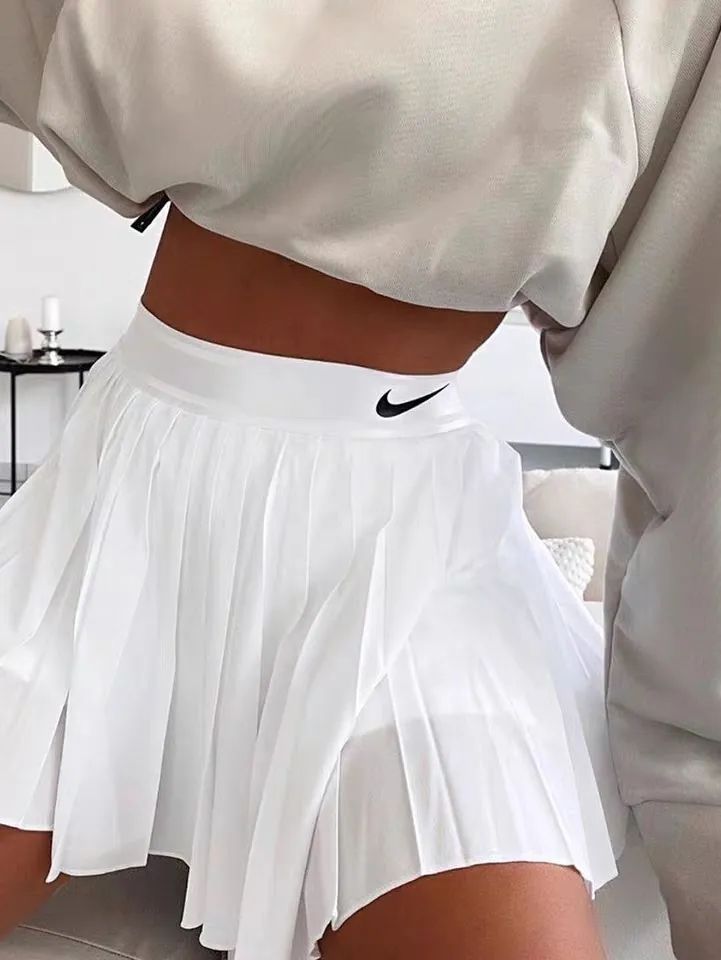 新款的Nike tennis skirt,简单的白色logo配以不规则的裙褶设计,露出的小标增添精致感,前卫又时髦,已经有不少博主都穿在了身上。