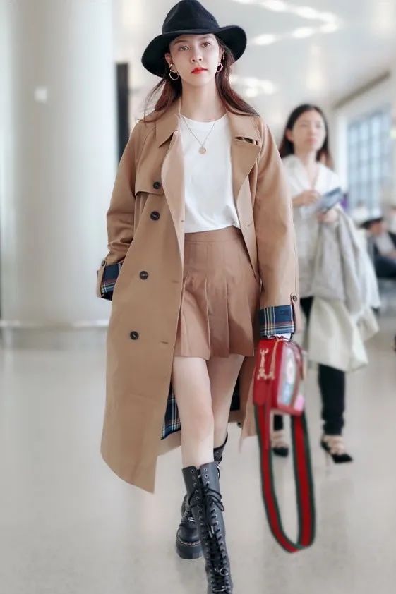 时髦女孩在基础的造型上又添了一件风衣,面对忽冷忽热的天最适合不过这套穿衣方式,同色系穿搭既不杂乱又能突出层次感,长筒马丁靴和中帽的加持都将这份酷劲演绎得刚好。