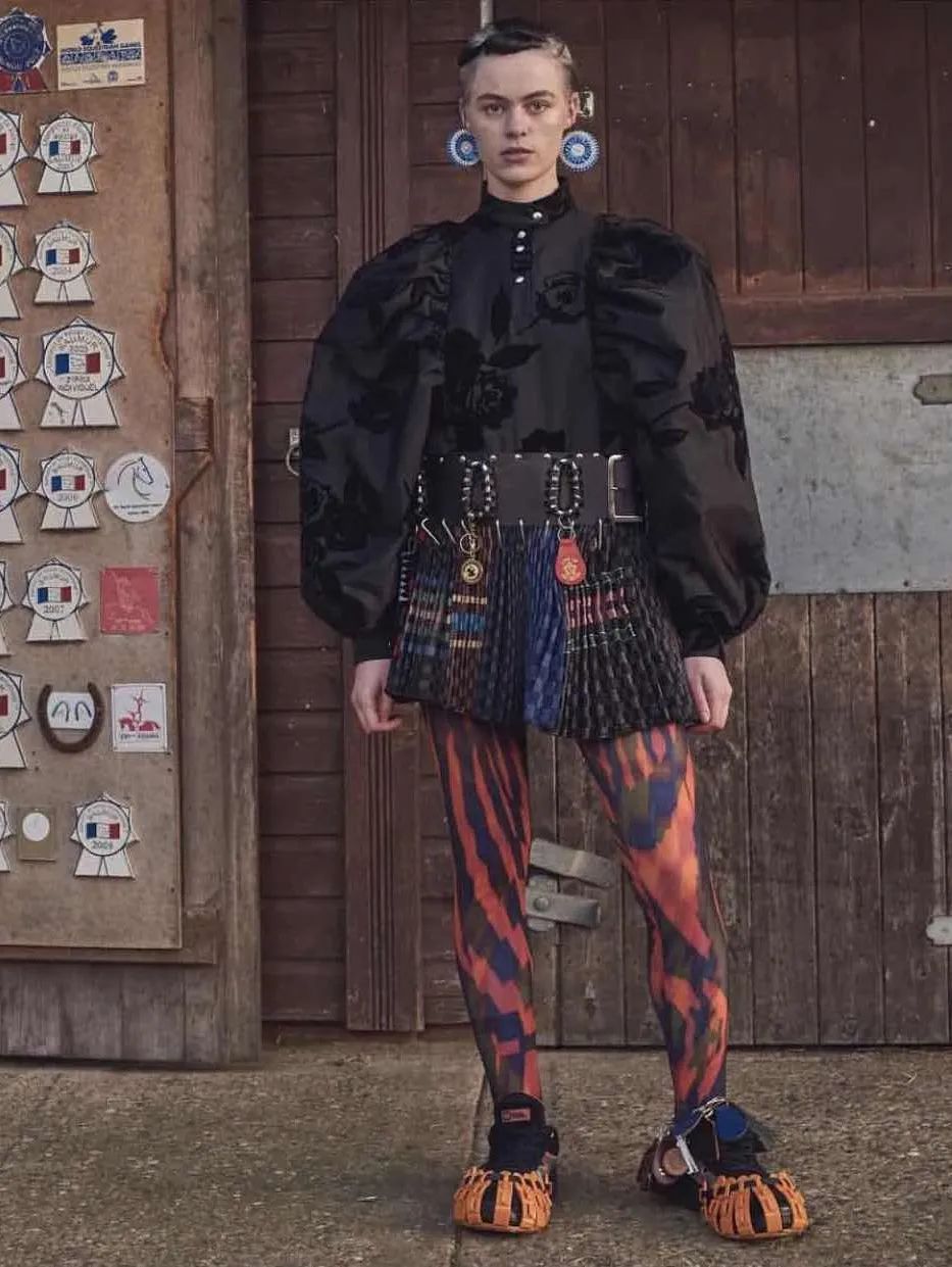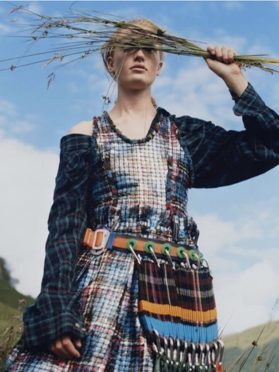 由Emma Chopova和Laura Lowena创立的伦敦品牌Chopova Lowena,跳脱除了传统百褶的理念,以其和谐的并列而闻名,裙身使用的原材料是来自保加利亚的传统枕套,每一款都独一无二,显得很有风格。