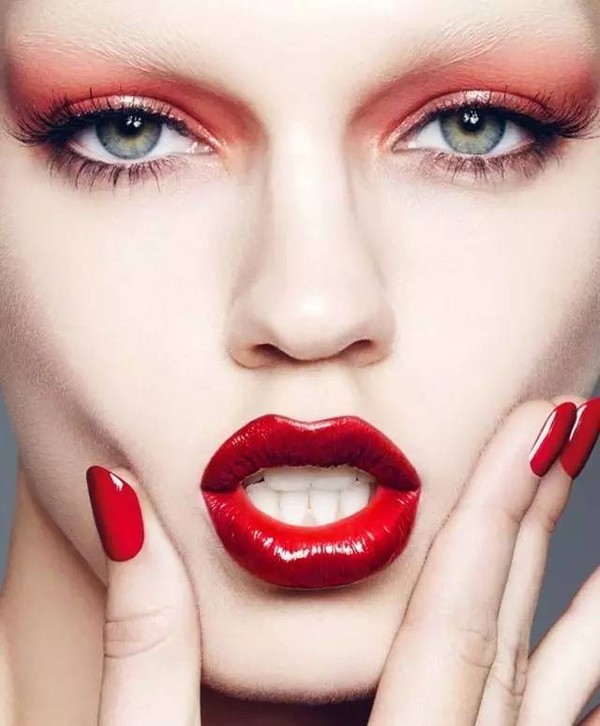 同理可证,当参照物是艳丽无比的红唇,你的牙齿看起来就是比不涂红唇时显白,这就是Fashion界的物理学!